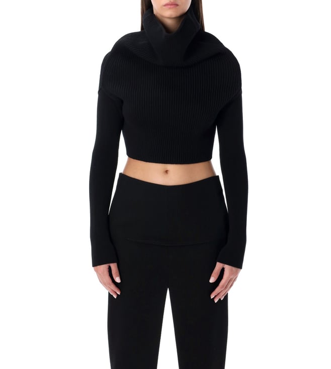 Black Relaxed Fit Wool Tailored Trousers
