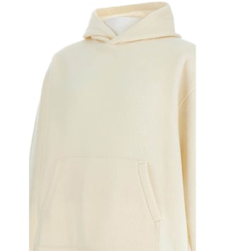 Wool hoodie with pocket. Oversized fit, elastic waist and cuffs, white. Products purchased from Darveys are supported exclusively by the warranty/exchange policies of Darveys and its partner boutiques. Brand owners and their channel partners are not responsible for exchange/warranty services for items purchased through Darveys.