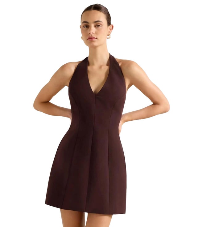 Introducing the Forever New Riley Structured Halter Mini dress, the perfect blend of sophistication and chic style. This flattering halter neckline and structured silhouette make it a versatile piece for any occasion. Crafted from high-quality materials, this mini dress is not only fashionable but also comfortable to wear all day long. Stand out in a crowd and make a statement with this timeless piece that will have you feeling confident and stylish wherever you go. Elevate your wardrobe with the Forever New Riley Structured Halter Mini dress.