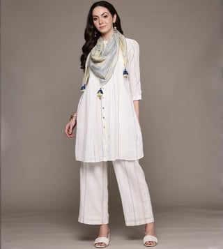 Craft an impeccable look by wearing this kurta with pant and dupatta. It is crafted with care using premium-quality fabric. Disclaimer: Product colour may slightly vary due to photographic lighting sources. Country of Origin - India.