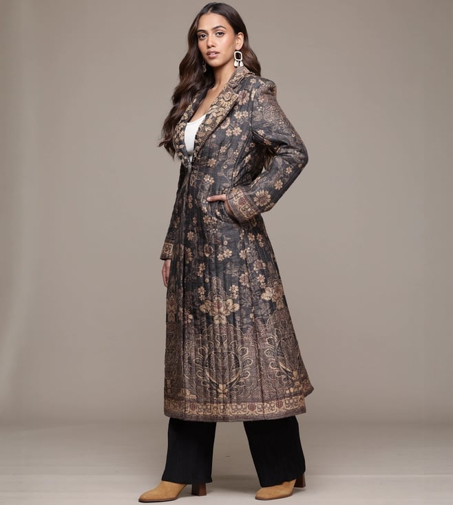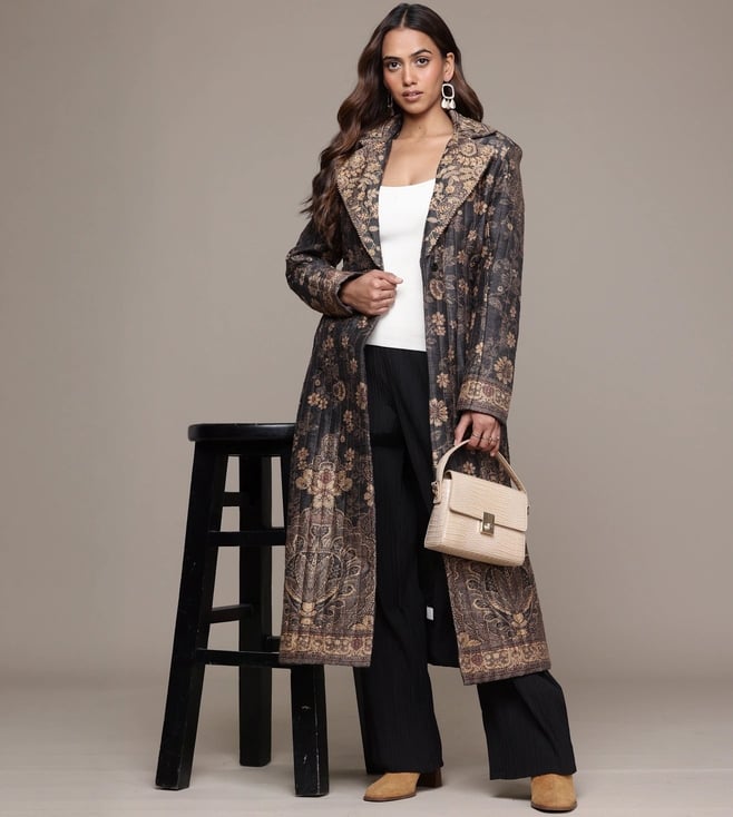 Elevate your style with the Ritu Kumar Black Arohi Full Sleeves Emb. Jacket. This elegant black jacket features intricate embroidery and a tailored fit, crafted from premium fabric for comfort and durability. Perfect for layering over kurtas or dresses, it adds a sophisticated touch to any outfit. The Arohi design blends traditional craftsmanship with modern flair, ideal for festive occasions or casual wear. This jacket is a timeless addition to your wardrobe.