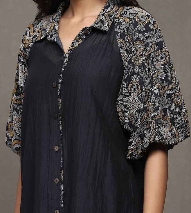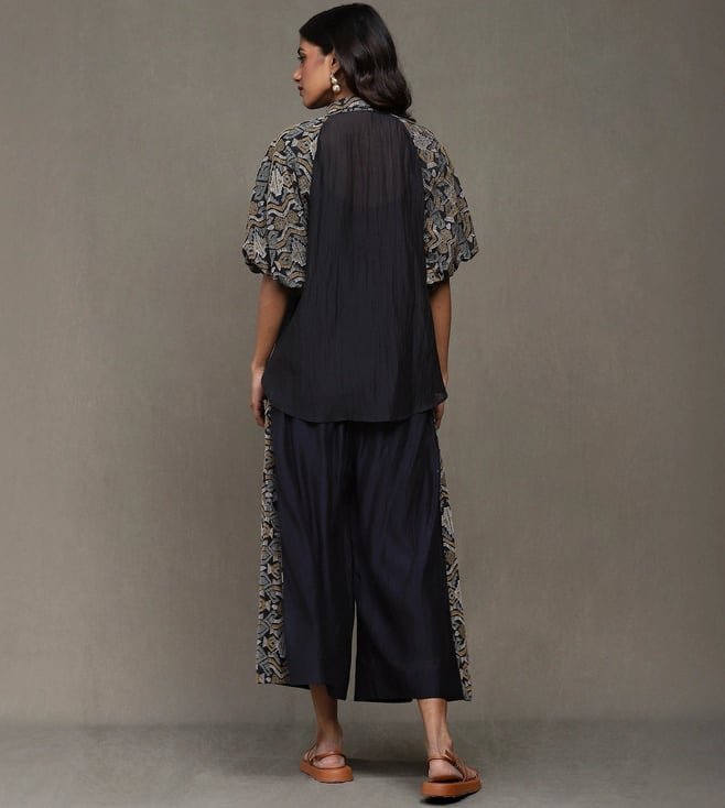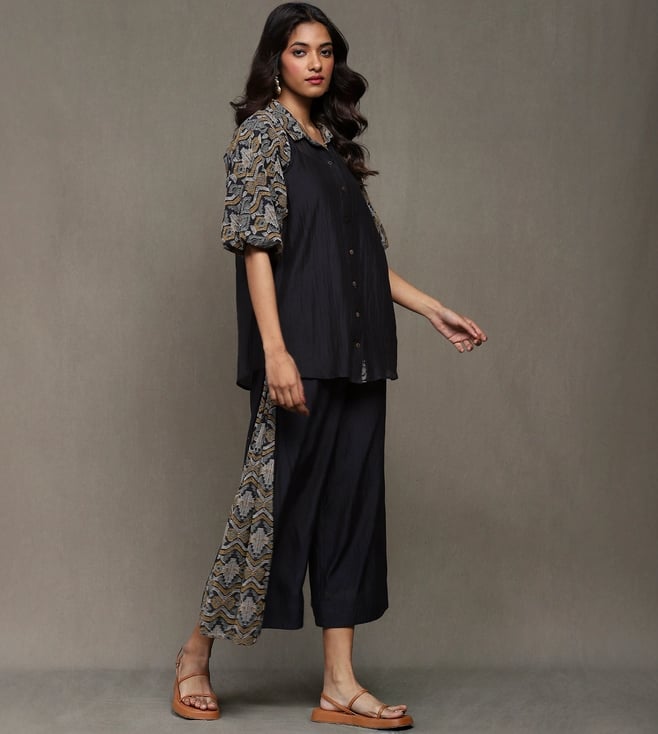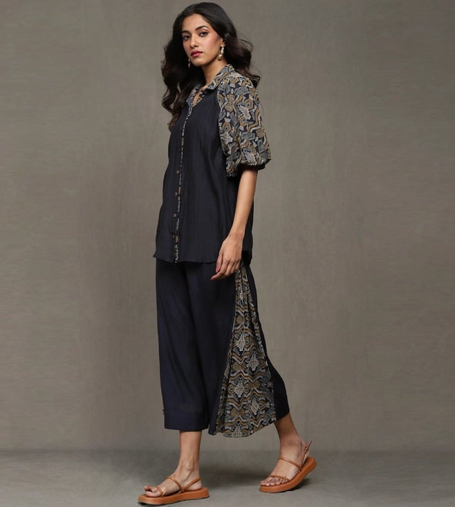 Ritu Kumar Black Devyani Embroidered Cotton Shirt with Pant Co-Ord Set
