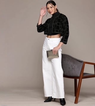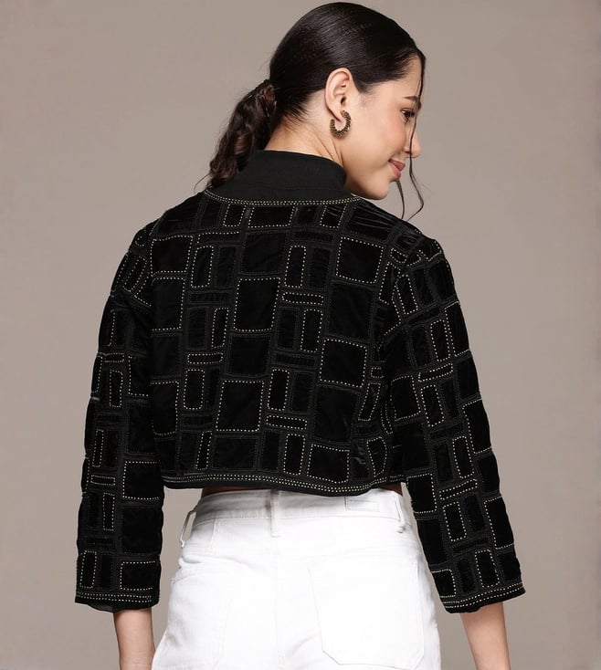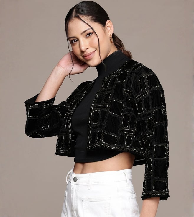 Curate a stylish look by wearing this jacket. It is crafted with care using poly velvet. Disclaimer: All other items in the image are only for display purposes and will not be a part of the delivery content. Product colour may slightly vary due to photographic lighting sources. Country of Origin - India.