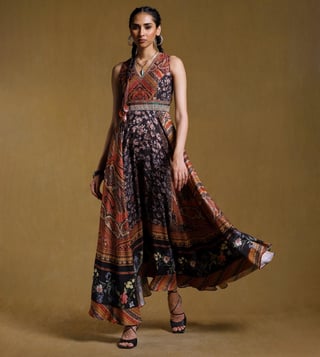 Impress your peers by donning this printed long dress. Crafted to perfection from tanchoi silk, it is soft on the skin and easy to maintain. Disclaimer: Product colour may slightly vary due to photographic lighting sources. Country Of Origin - India.