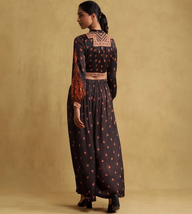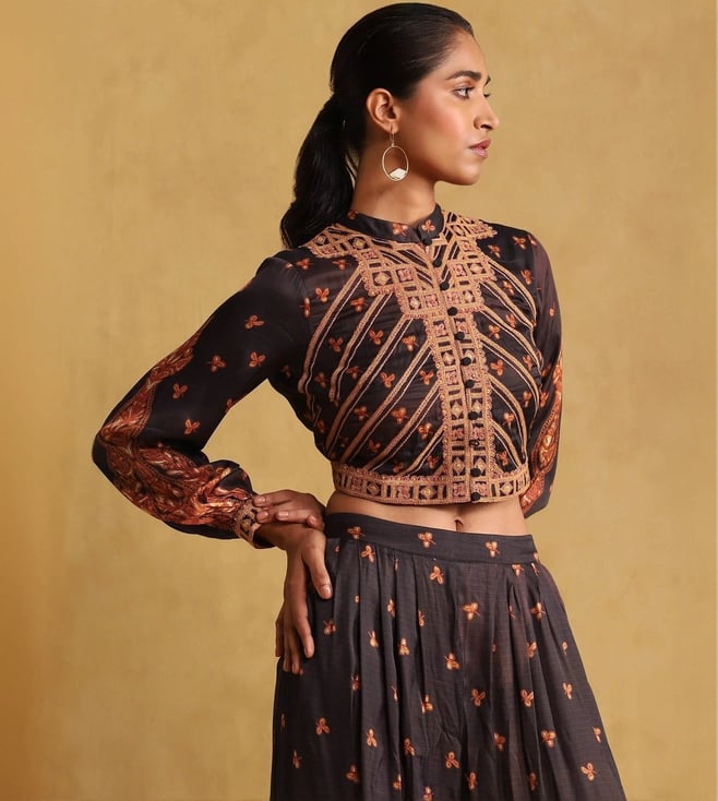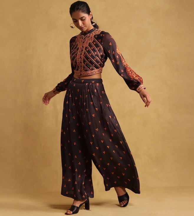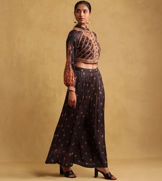 Showcasing an elaborate detailing, add an extra charm to your look wearing this jacket with palazzo. It is crafted from dehri satin. Disclaimer: Product colour may slightly vary due to photographic lighting sources. Country of Origin - India.