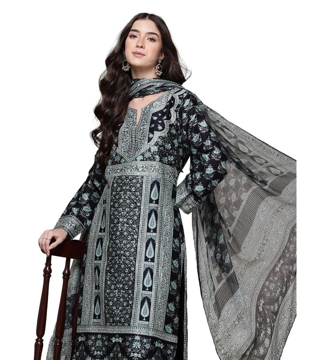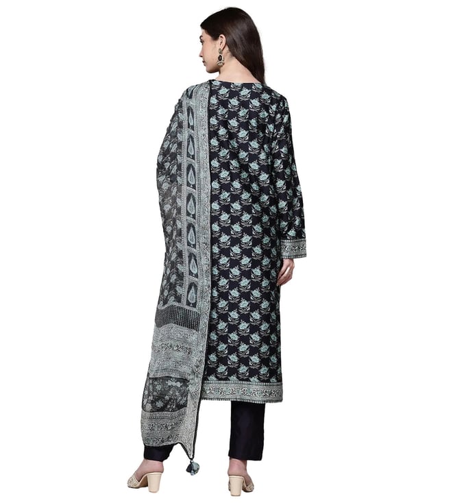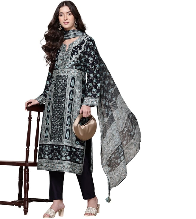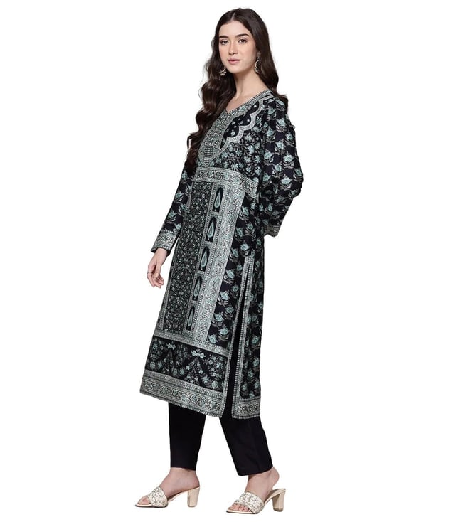 Ritu Kumar Black Regular Fit Printed Kurta Set