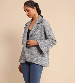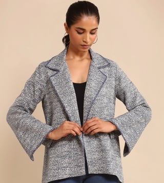Dress like you're on the runway of your own life by wearing this jacket. Crafted using perfection with cotton slub jacquard, it is a soothing and trendy choice. Disclaimer: All other items in the image are only for display purposes and will not be a part of the delivery content. Product colour may slightly vary due to photographic lighting sources. Country of Origin - India.