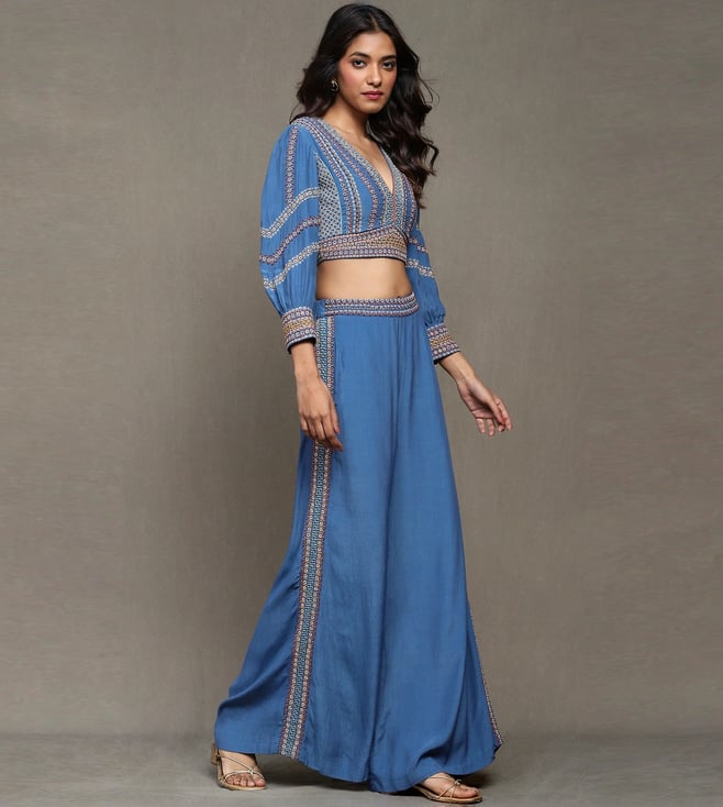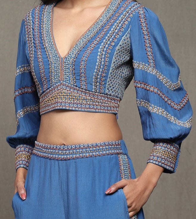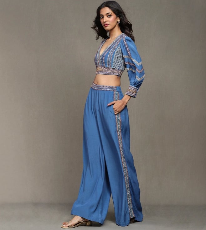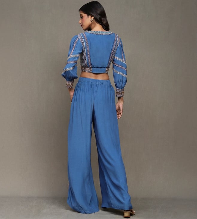 Ritu Kumar Blue Masimo Embroidered Top with Pant Co-Ord Set