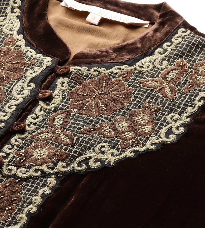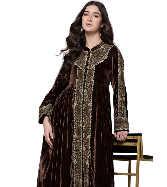 Ritu Kumar Brown Relaxed Fit Embroidered Dress