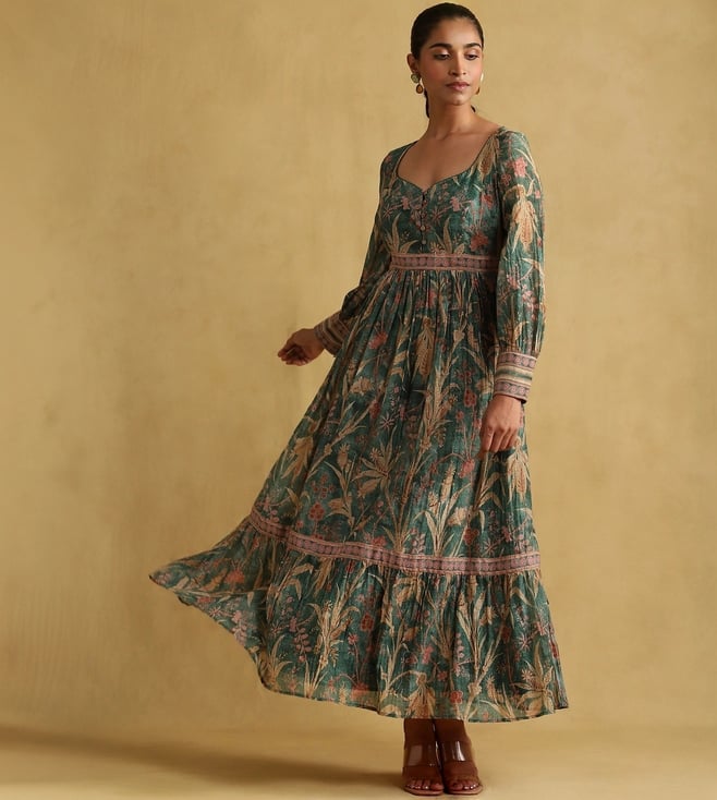 Off White & Blue Light Kashida Hand Emb Joshika Kaftan