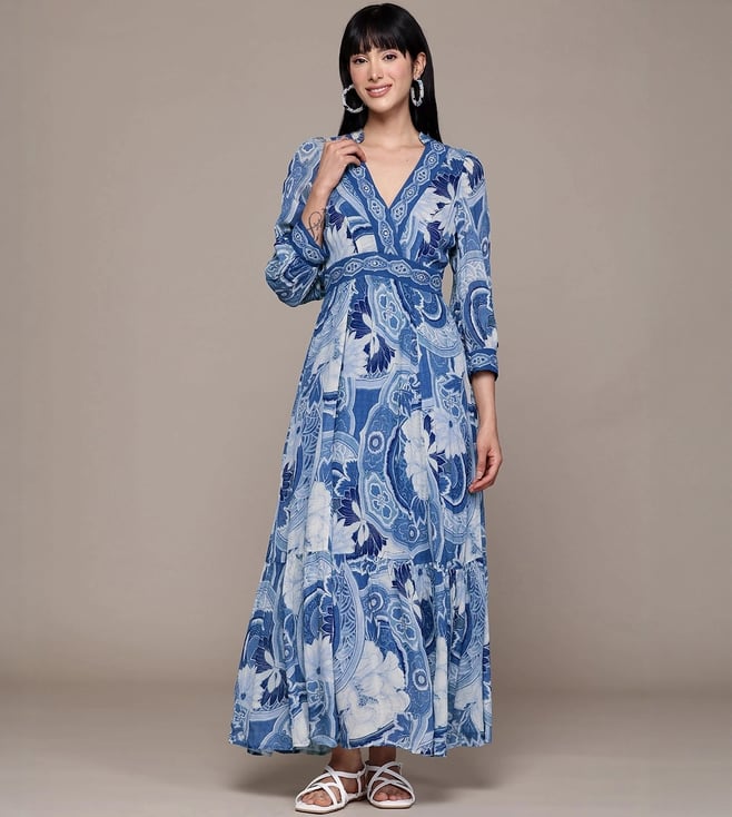 Off White & Blue Light Kashida Hand Emb Joshika Kaftan