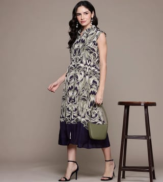 Fix yourself an amazing look by wearing this dress. Tailored to sartorial perfection from viscose crepe, it assures a soft and soothing touch against the skin. Disclaimer: Product colour may slightly vary due to photographic lighting sources. Country of Origin - India.