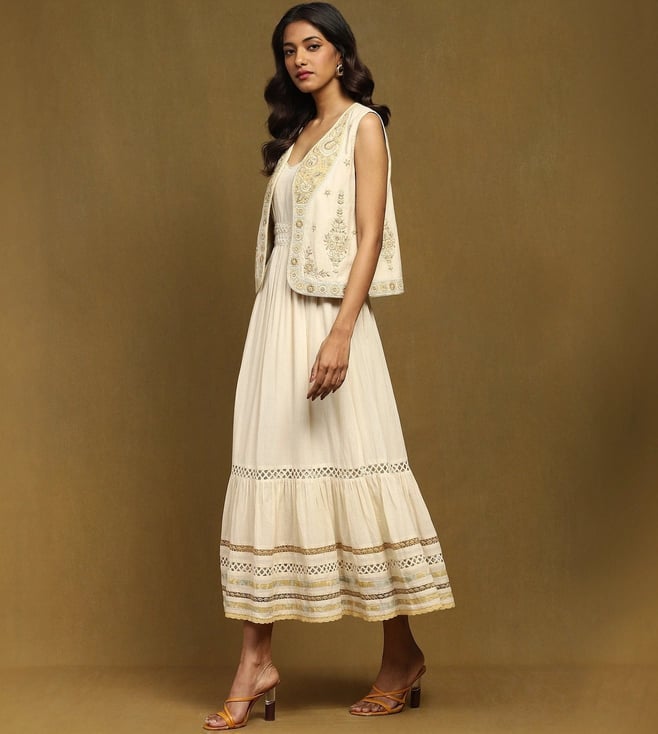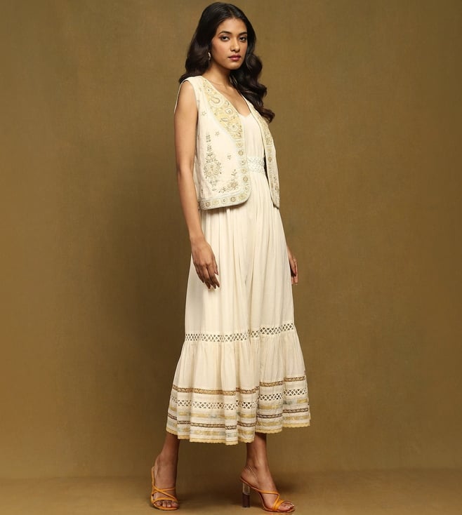Ritu Kumar Ivory Afreen Embroidered Dress with Gilet