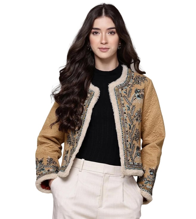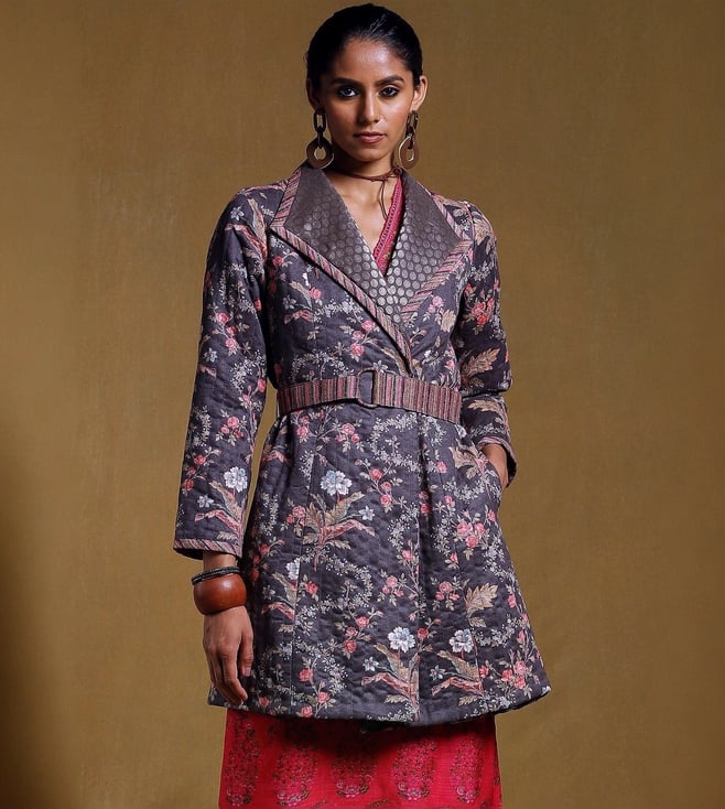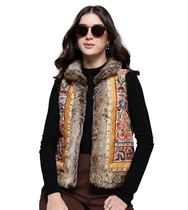 Lapel Collar Full Sleeve Long Printed Suede Jacket