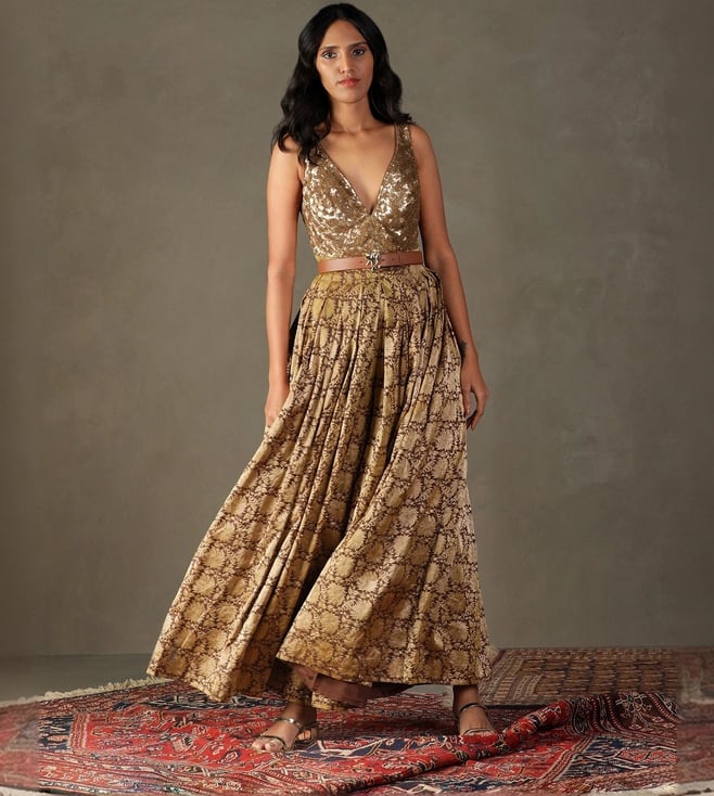 Cocos Brown & Gold Rudraksh Jumpsuit