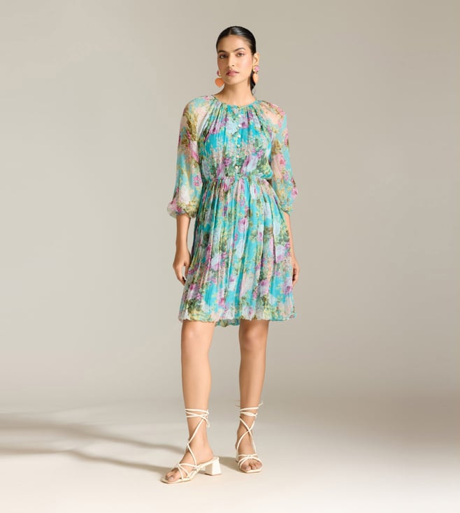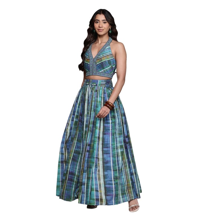 Blue Floral Print Kurti With Palazzo Co-Ords Set