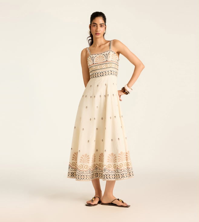 Off White & Blue Light Kashida Hand Emb Joshika Kaftan
