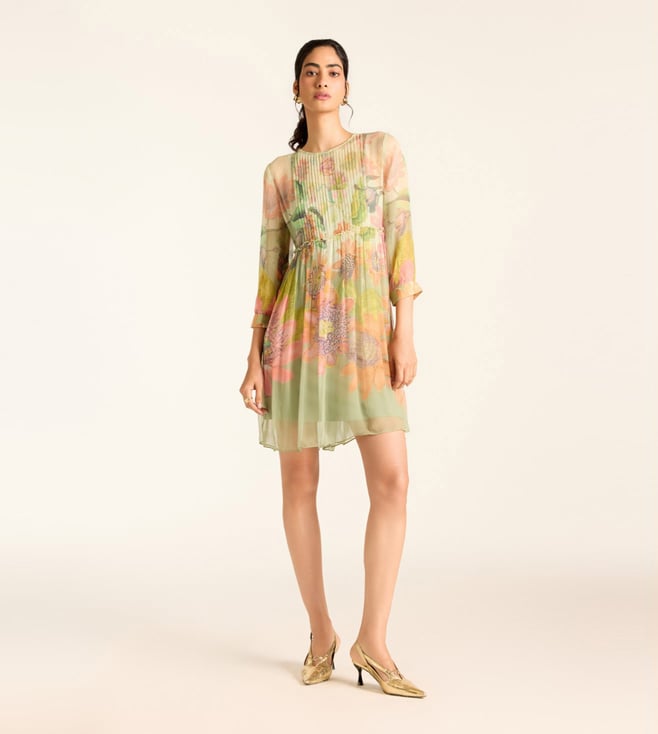 Green Floral Print Chanderi Kurta With Palazzo And Dupatta