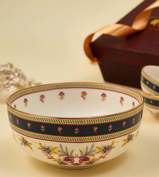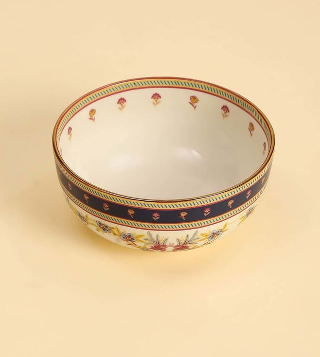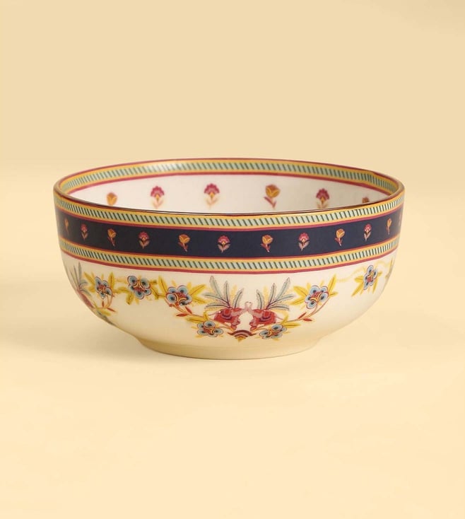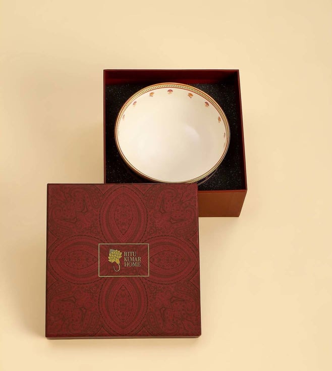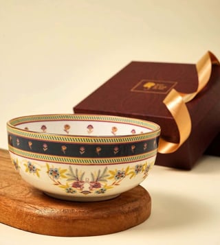 Elevate your dining experience with this versatile serving bowl from Ritu Kumar, designed to blend functionality with timeless elegance. It enhances every meal presentation. Crafted for durability and easy handling, it transitions seamlessly from kitchen to table. Disclaimer: Product colour may slightly vary due to photographic lighting sources. Country of Origin - India.