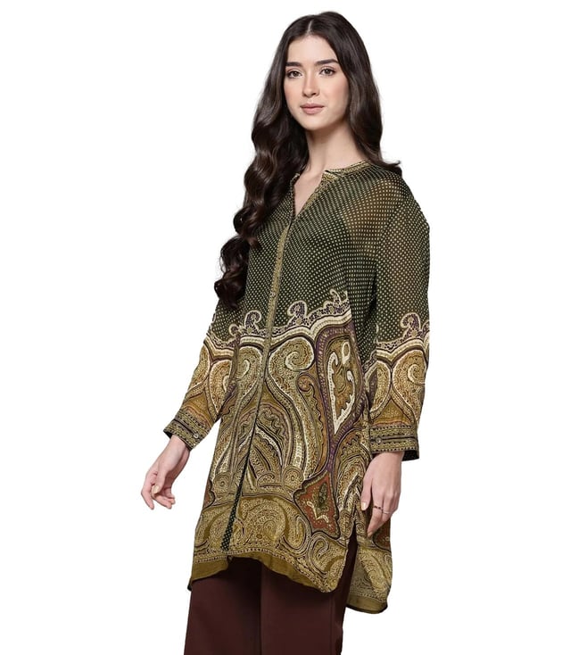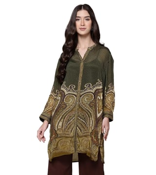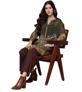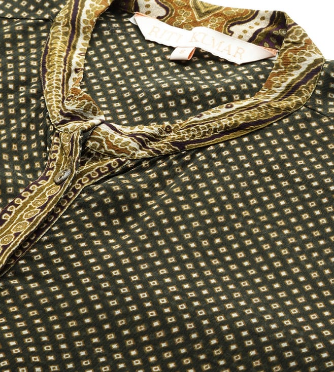 Ritu Kumar Olive Relaxed Fit Printed Kurti With Camisole