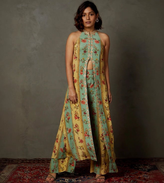 Emerald & Mustard Ariyana Top with Pant Embroidered Ensemble Set