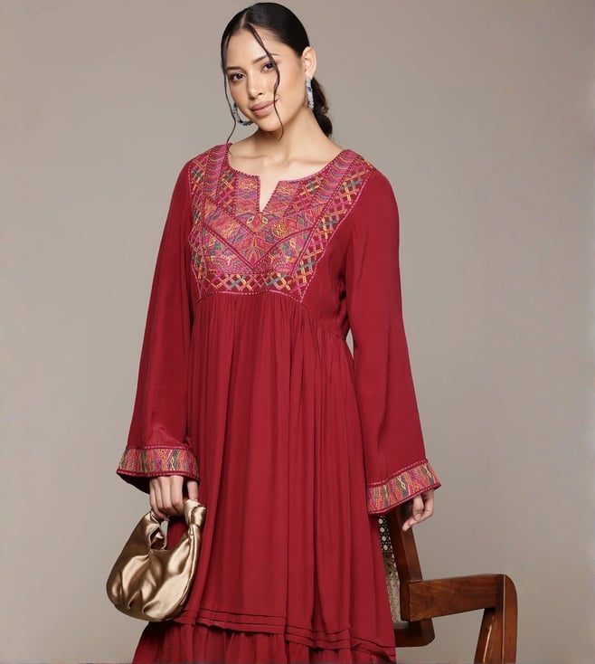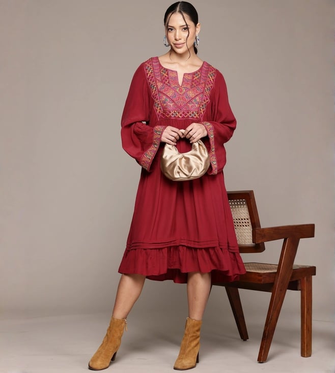 Get ready to be overwhelmed with a flurry of compliments by wearing this dress. It is crafted with care using viscose crepe. Disclaimer: Product colour may slightly vary due to photographic lighting sources. Country of Origin - India.