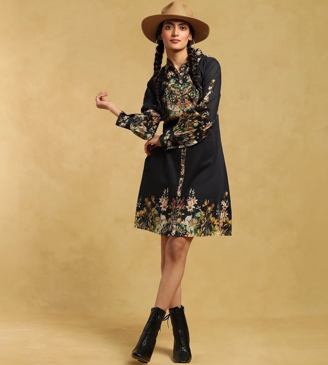 Black Devyani Embroidered Cotton Shirt with Pant Co-Ord Set