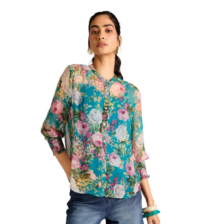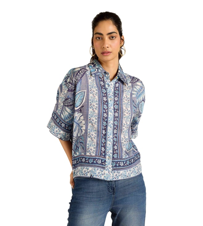 Blue Geometric Print Shirt With Palazzo Co-Ord Set
