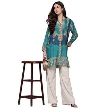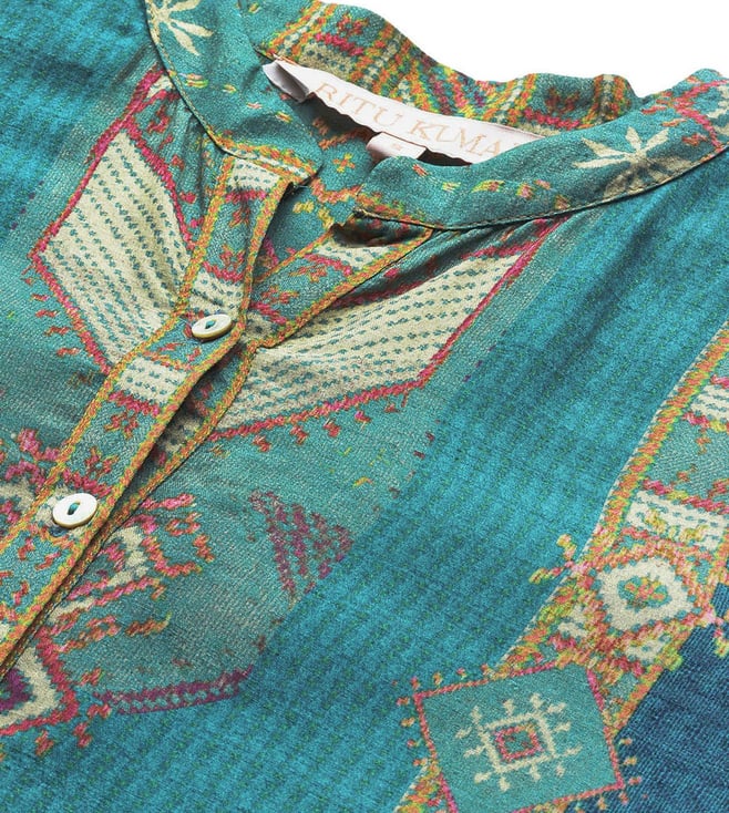 Ritu Kumar Teal Regular Fit Printed Kurta