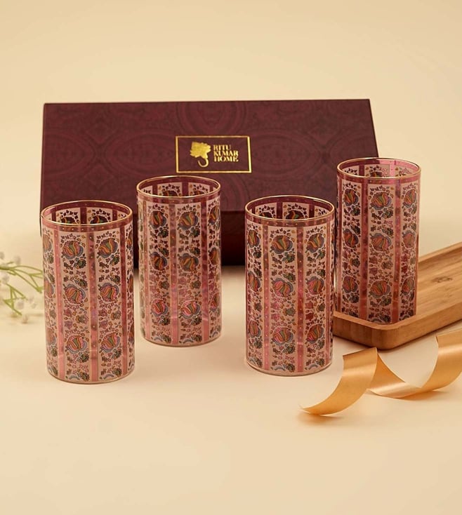 Multicolor Printed Glass Glass - Pack of 4