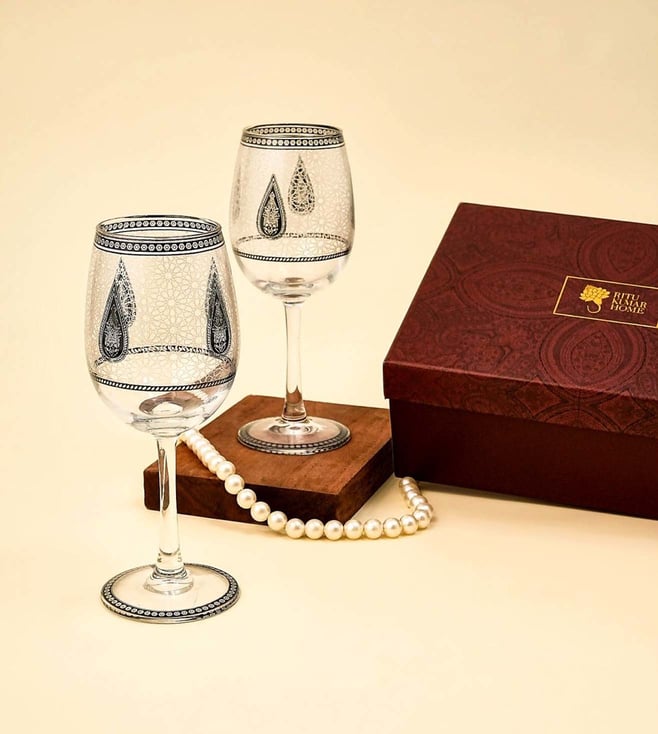 Black White Printed Glass Goblet Glass - Pack of 2