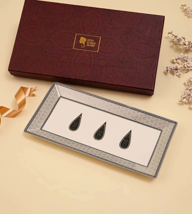 Black White Printed Porcelain Small Platter - Pack of 2