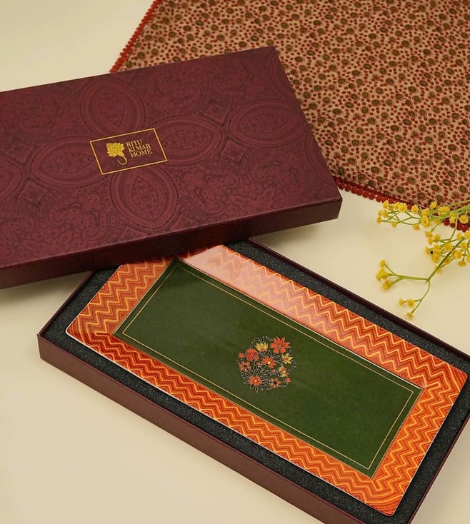 Multicolor Printed Porcelain Small Platter - Pack of 2