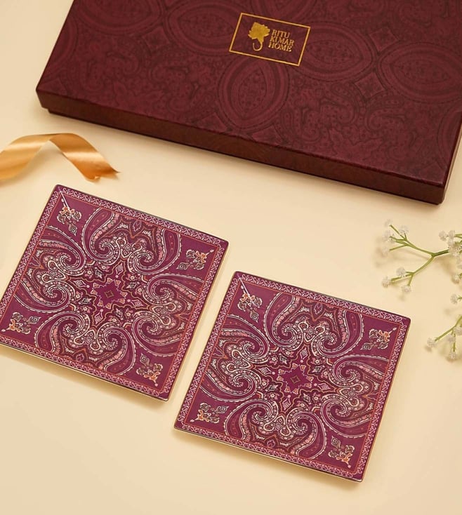 Fuchsia Printed Porcelain Small Platter - Pack of 2