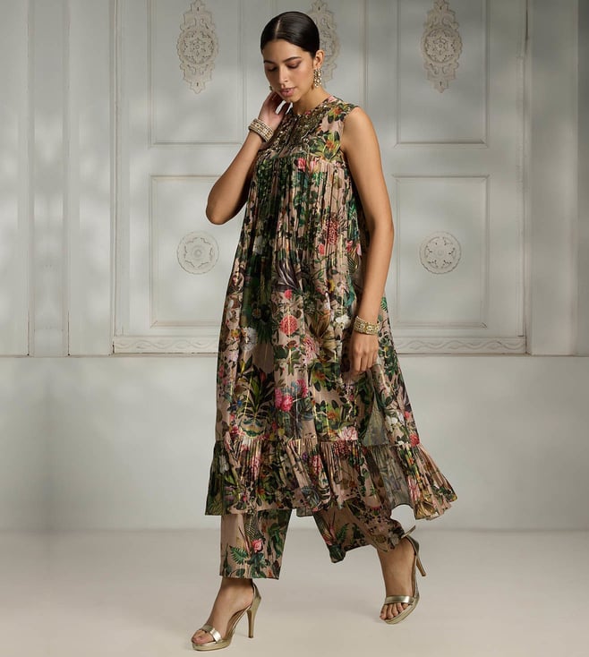 Elevate your style with our Rivaar beige floral regular fit suit sets. This sophisticated ensemble features a timeless floral design that exudes elegance and charm. The regular fit ensures a comfortable and tailored look, perfect for any occasion. Made with high-quality materials, this suit set offers a luxurious feel and impeccable craftsmanship. Stand out from the crowd and make a statement with the Rivaar beige floral suit sets, a must-have addition to your wardrobe.