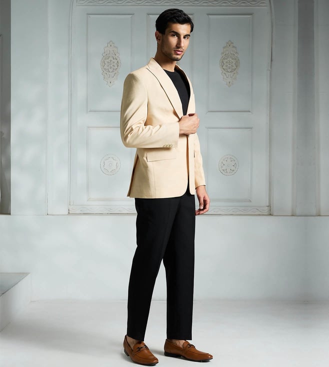 Elevate your style with the Rivaar beige regular fit blazer. This versatile piece is the perfect blend of sophistication and comfort, making it a wardrobe essential for any occasion. Crafted with premium materials, the blazer offers a tailored fit that exudes confidence and style. Whether you aree dressing up for a formal event or adding a touch of sophistication to your everyday look, the Rivaar blazer is sure to make a statement. Upgrade your outfit effortlessly with this timeless piece that will have you looking sharp and polished.
