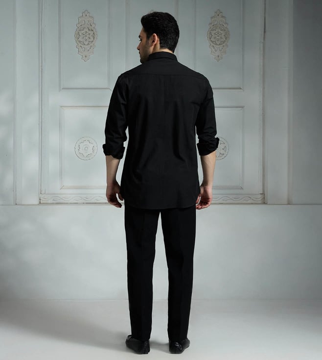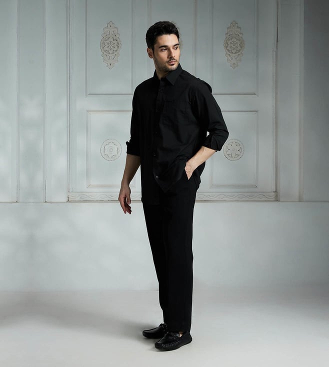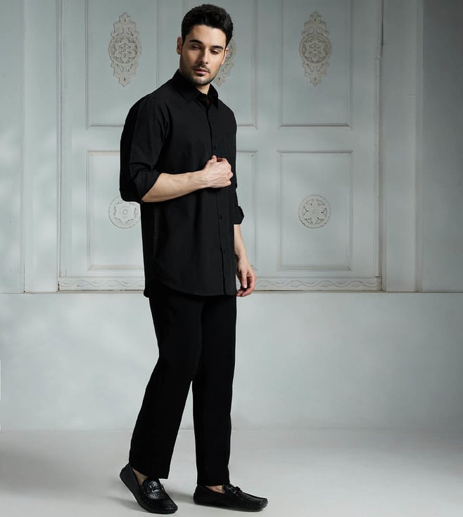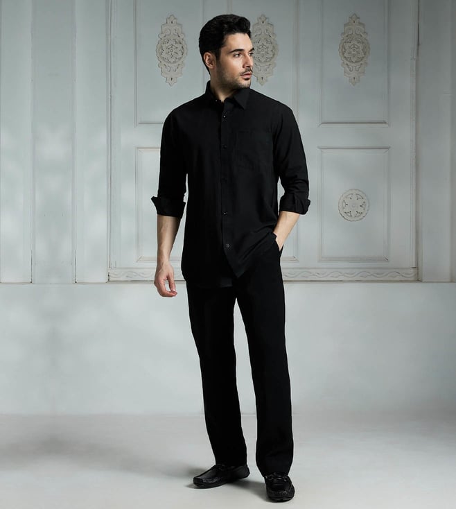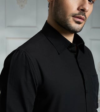 Elevate your wardrobe with the Rivaar black regular fit shirt. Crafted with high-quality materials, this versatile shirt offers a timeless design that seamlessly transitions from the office to a night out. The regular fit ensures a comfortable and flattering silhouette, while the classic black hue adds a touch of sophistication to any outfit. Whether you aree dressing up for a special occasion or simply looking to upgrade your daily style, the Rivaar black regular fit shirt is a must-have staple for every modern wardrobe.