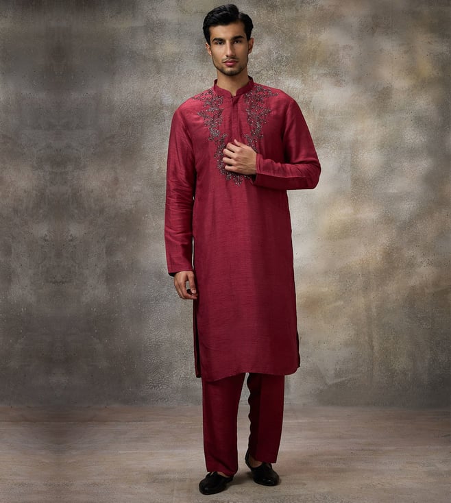 Rivaar by Rocky Star Maroon Burgundy Embroidered Regular Fit Kurta Set