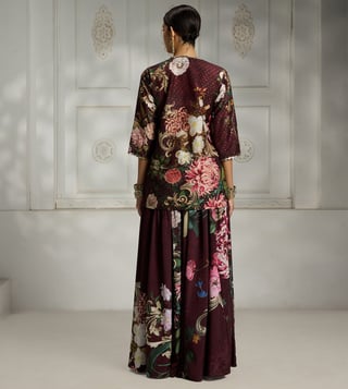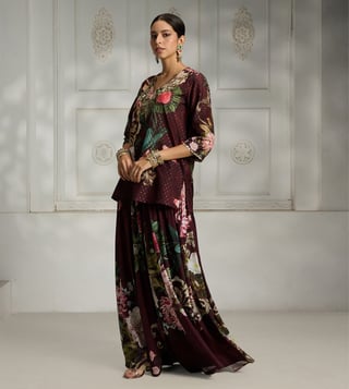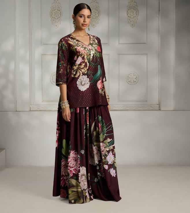 Maroon Festive Pret Floral Printed Regular Fit Tunic