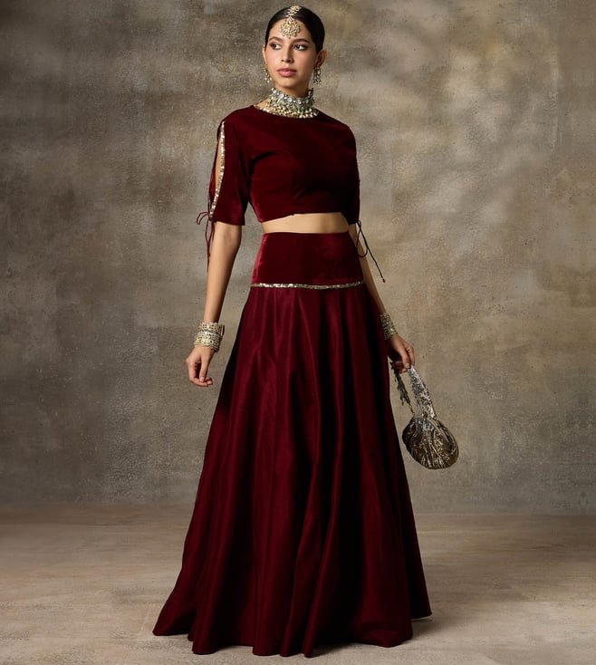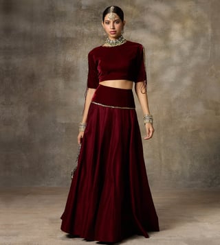 Rivaar by Rocky Star Maroon Regular Fit Lehenga Set