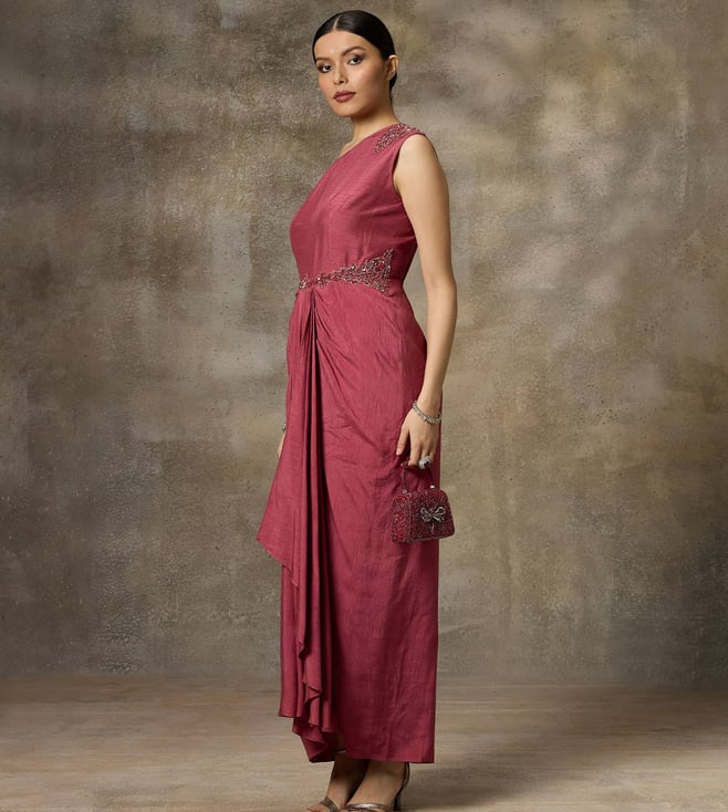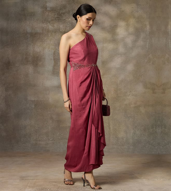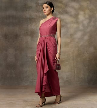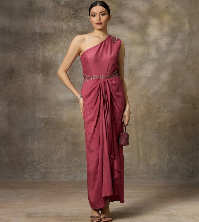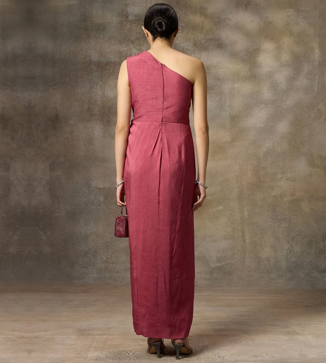 Rivaar by Rocky Star Onion pink Festive Pret Drapped One Shoulder Regular Fit Midi Gown