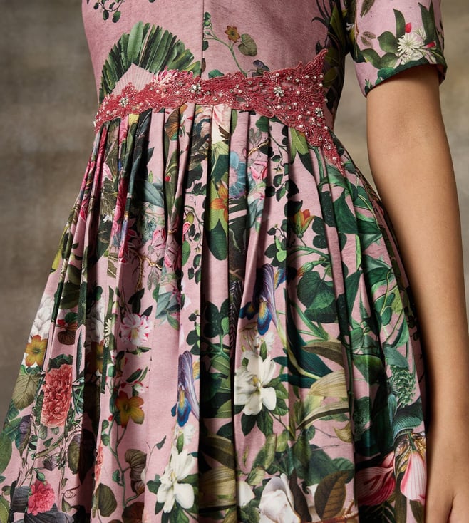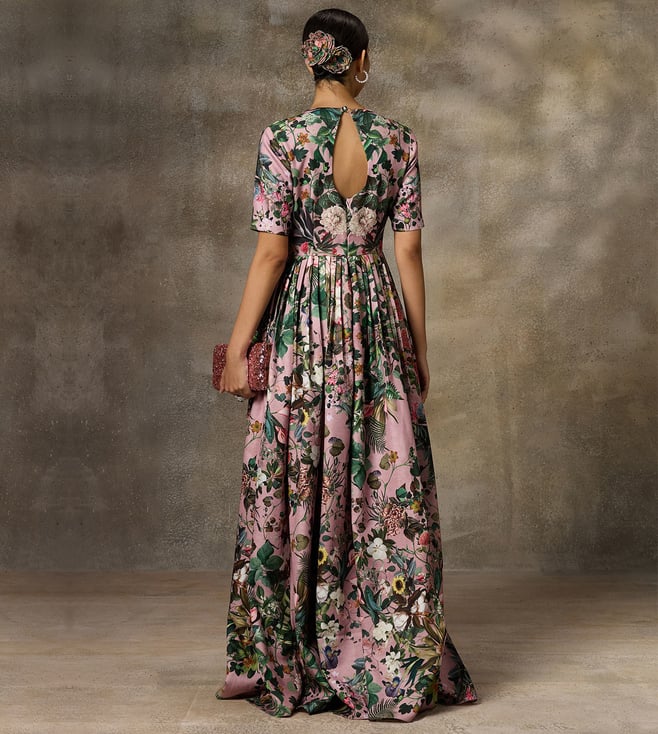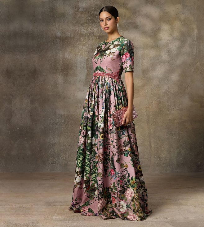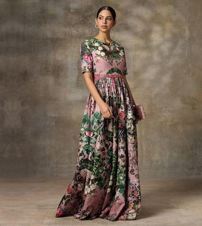 Rivaar by Rocky Star Pink Festive Pret Botanical Printed Regular Fit Maxi Gown