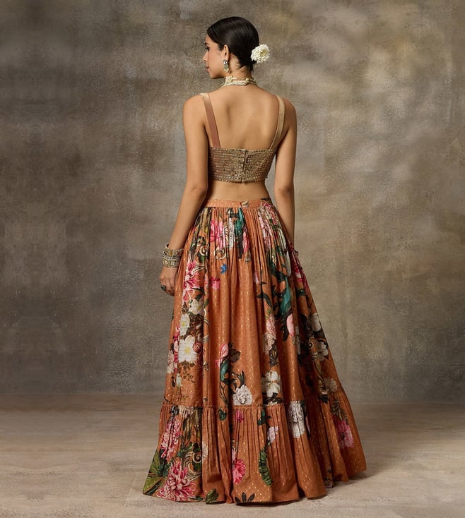 Rivaar by Rocky Star Rust Floral Printed Regular Fit Lehenga Set