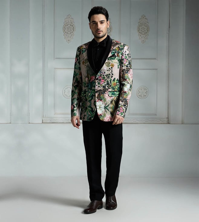 Black Printed Regular Fit Blazer