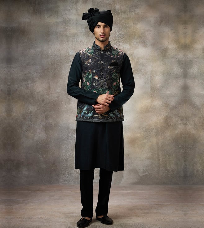 Black Floral Signature Regular Fit Kurta