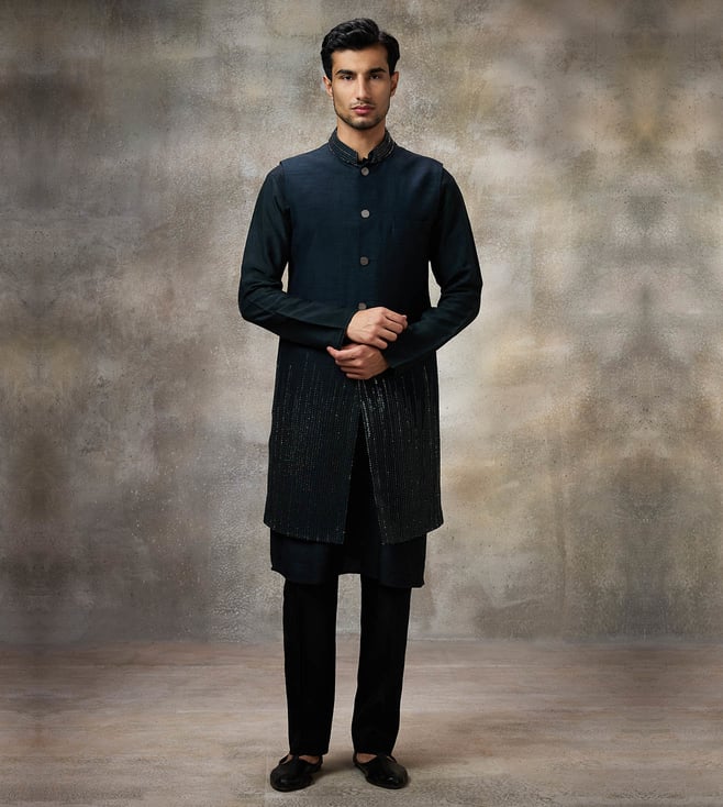 Black Embellished Regular Fit Kurta Set
