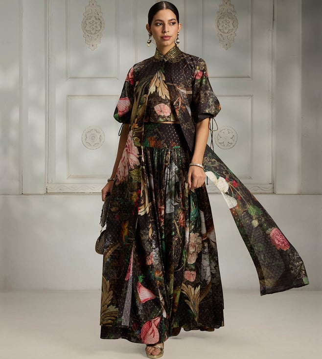 Black Floral Printed Regular Fit Kurta Set
