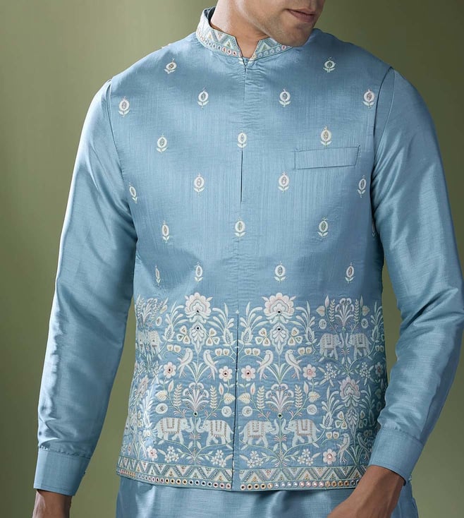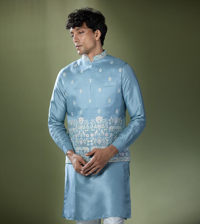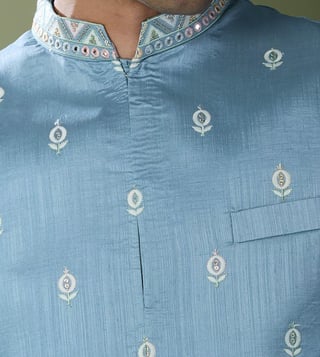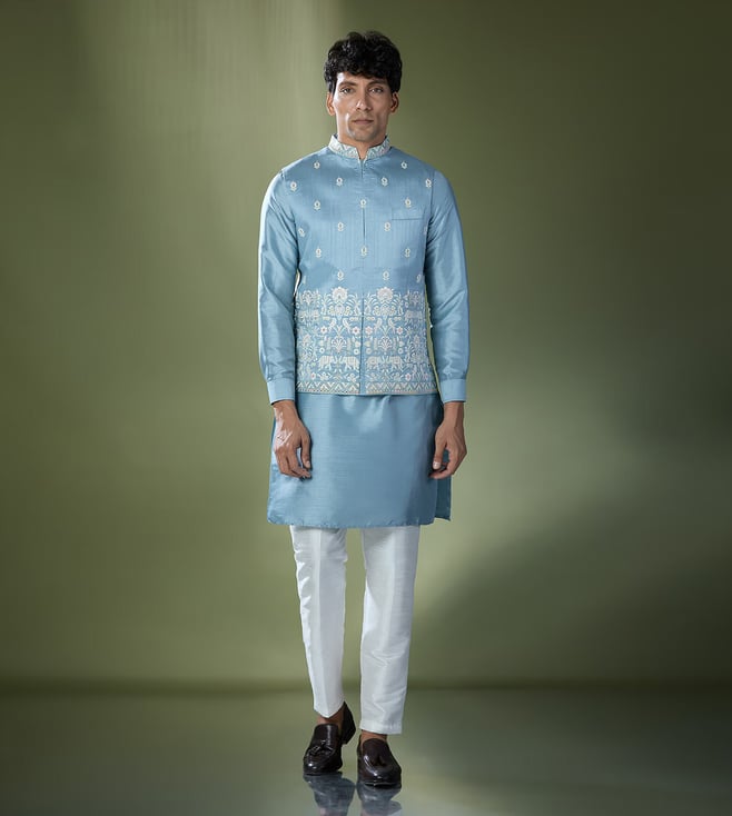 RNG Safawala Blue Regular Fit Kurta Set With Jacket