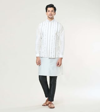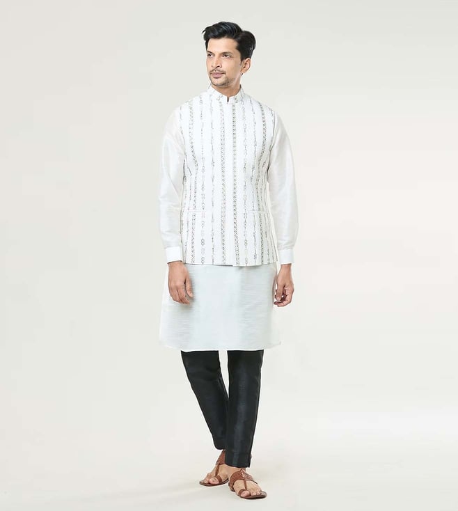 RNG Safawala Off White Regular Fit Kurta Set With Jacket