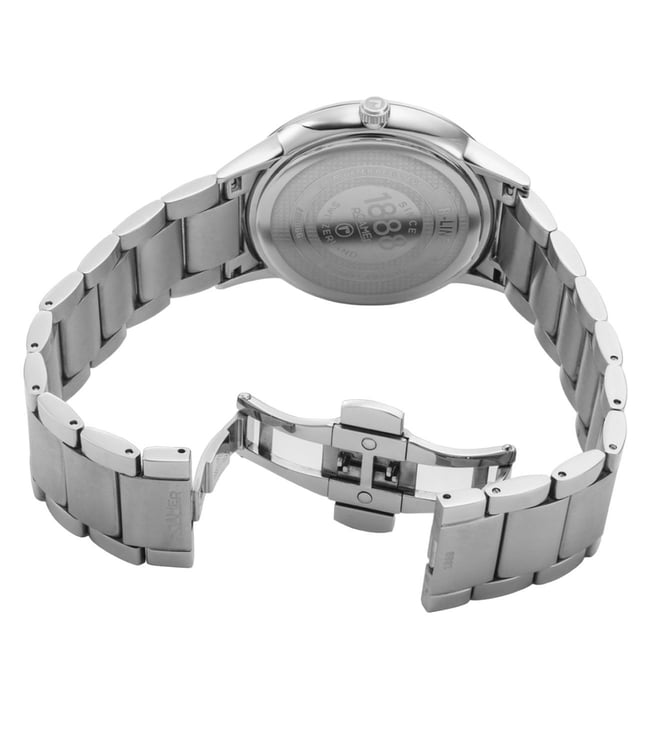 R-Line GMT is a travel watch with a dual time zone display, blending practical functionality with vintage charm in an elegant, minimalist design. A reliable companion on business trips or private holidays in different time zones, this dress-watch is powered by a Swiss-made Ronda quartz movement. Eight slender and four wider baton indices mark the hours, surrounded by a GTM 24-hour scale with twelve small Arabic numerals. A delicately framed window at the 3 o'clock position shows the date.